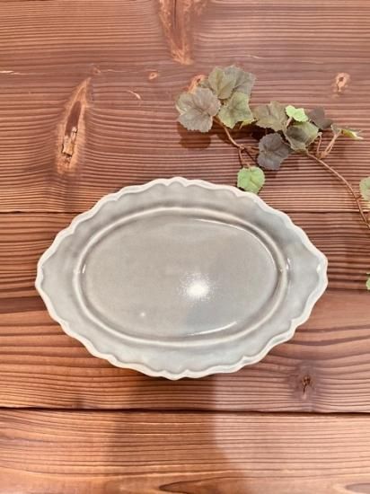 ブルーグレー釉シリーズのお皿です。西洋の雰囲気漂うリムのデザインが美しい佇まいです。艷やかな質感と、こっくりとした色合いも見るものを魅了します。また釉薬の濃淡も味わい深く奥ゆかしさが感じられます。全体にうっすらと貫入(かんにゅう)と呼ばれるヒビのようなものが見られます。また点やピンホール、茶色く焦げているように見られる部分もあり、陶器ならではの素朴な風合いも感じられます。切り身魚や揚げ物などのおかず皿、サラダやデザートなどに。食洗機、電子レンジでのご使用が可能なのも嬉しいところ。お気軽に日常使いとしてお楽しみいただけます。