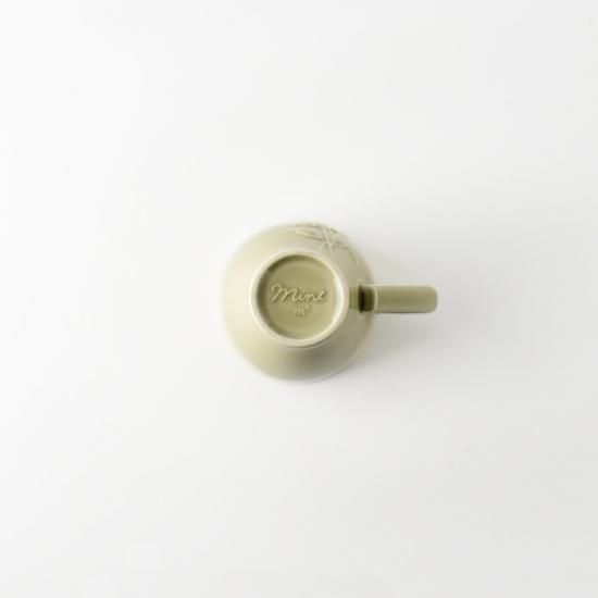 蓋の取手まで葉の形になっていてチャーミングです。ミントプレートと一緒に使ったり、家で過ごす時間や仕事中に温かい飲み物を飲んでほっと一息つくのにぴったり。一枚でも存在感のあるミントシリーズは、ちょっとしたプレゼントにもオススメのアイテムです。