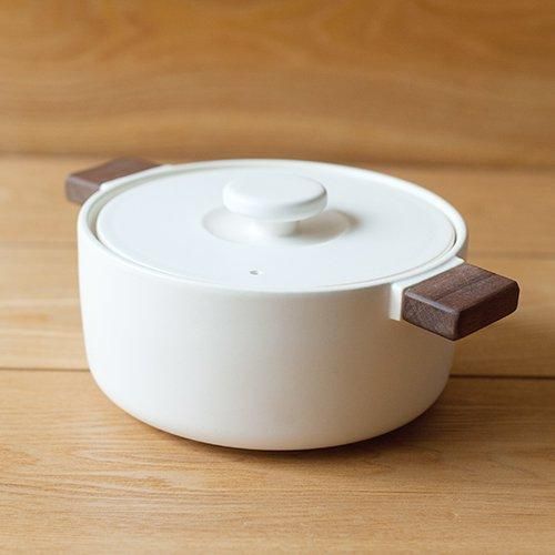 天然木の持ち手が優しく可愛らしいイメージの両手鍋です。