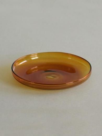 型吹きグラスならではの色や厚みのムラが、シンプルなプレートにニュアンスを加えています。
