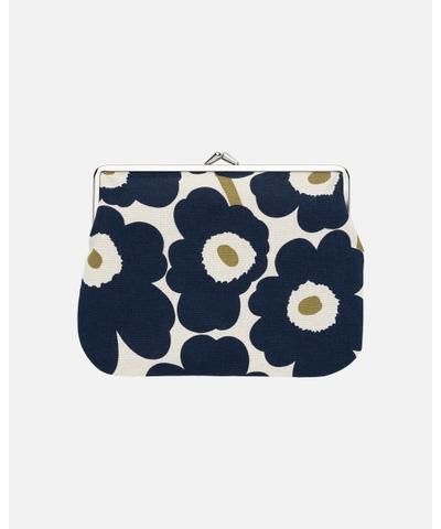 【正規販売店】 marimekko 【日本限定カラー】 Puolikas Kukkaro Mini Unikko がま口ポーチ メタリックゴールド×ネイビーブルー