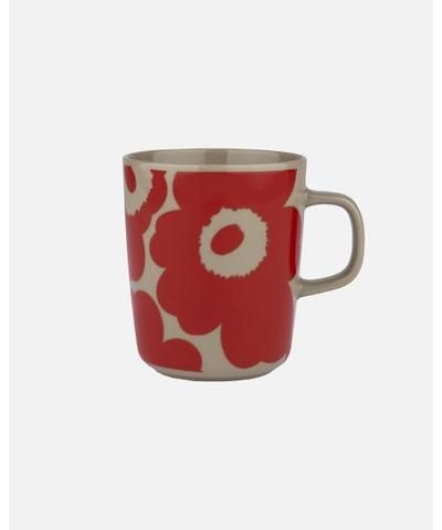 ケシの花をモチーフにしたUnikko柄をテラコッタ×レッドで仕上げたマグカップ。コーヒーや紅茶を淹れて、お家でゆったりカフェ気分を満喫。存在感の溢れるデザインは、卓上に置くだけで華やかなムードに。電子レンジや食洗機に対応し、日常に使いやすい機能性を備えています。