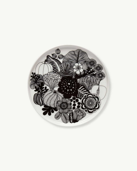 市民菜園を意味するSiirtolapuutarha柄を描いた円形のプレート。ワンプレート料理を盛り付けるのに最適な大きさです。フチにやや高さがあるため、持ちやすいのも特徴です。モノトーンがベースのモダンなデザインで、棚に飾ればインテリアアイテムとしてもお楽しみいただくことができます。