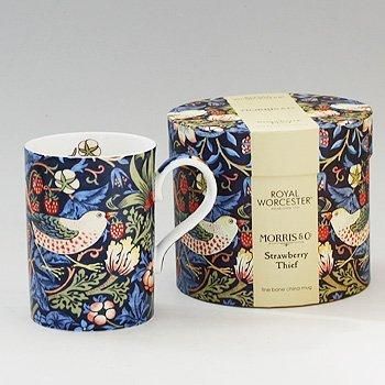 英国の思想家どもありデザイナーでもあるウィリアム・モリスの代表作「イチゴ泥棒」Strawberry Thief(1883)のマグカップ。350mlマグカップは、容量たっぷりの大きいサイズですので