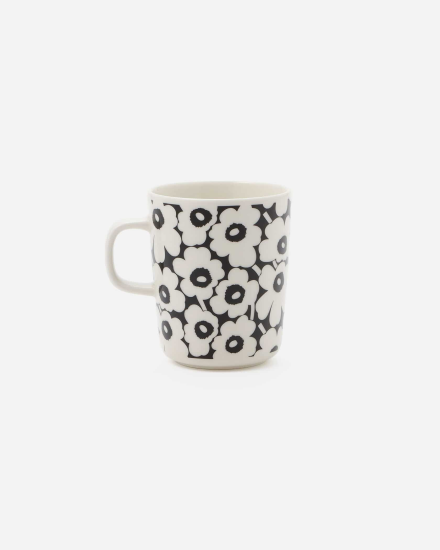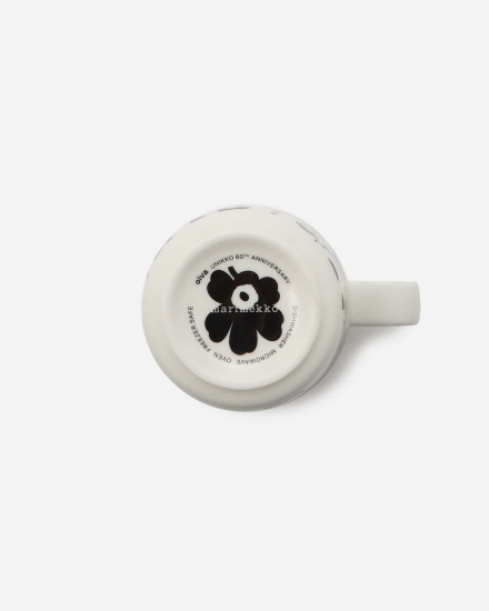 Marimekkoを代表するUnikko柄の60周年を記念したマグカップ。モノトーンながらも、花のモチーフ柄を全面に配した華やかさ満点のデザインがポイント。小ぶりな持ち手とシンプルで使いやすいフォルムで、デイリーに活躍します。テーブルコーディネートのスタイリッシュなアクセントになるアイテムです。