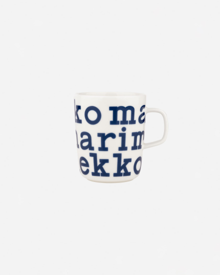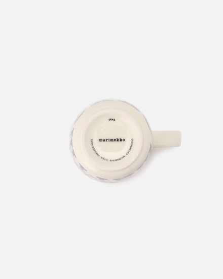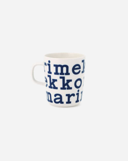 Marimekkoのロゴアルファベット柄がスタイリッシュなデザインのマグカップ。持ち手が小ぶりなシンプルで使いやすいフォルムもポイント。シックなデザインでインテリアに馴染みやすく、テーブルコーディネートのアクセントにぴったり。食洗機、オーブン、電子レンジ、冷凍対応で機能面も優秀でデイリーに活躍するアイテムです。