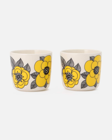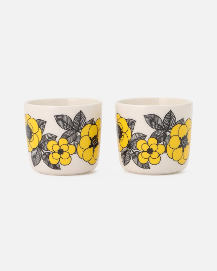印象的で鮮やかなフラワーモチーフが目を引くKestit柄のコーヒーカップセットです。ハンドルがなく、両手で包み込むように手に取れるのが特徴。コーヒータイムや朝食の時間、おもてなしのひと時などを華やかに彩ります。お揃いのプレートなどを合わせて楽しむのもおすすめ。新生活のギフトなどにも最適なアイテムです。