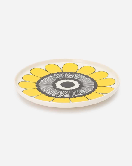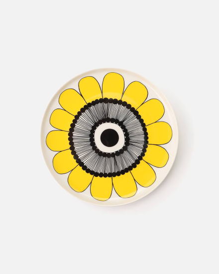 印象的で鮮やかなフラワーモチーフが目を引くKestit柄のプレートです。縁が立った丸型のフォルムは、少し汁気があるものも綺麗に盛り付けられるのが特徴。少し大きめの取り皿や、個別のサラダプレートなどとしても活躍するサイジングです。スタッキングがしやすいため、人数分揃えておくのもおすすめです。