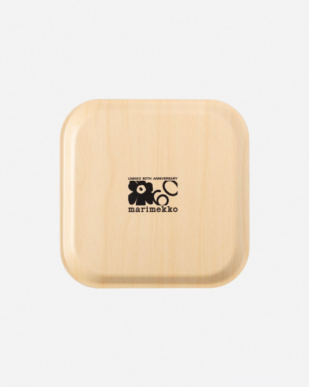 Marimekkoを代表するUnikko柄を大胆にプリントしたスタイリッシュなトレイ(20x20cm)。1964年にデザインされたUnikko柄の生誕60周年を記念したアイテムで、アニバーサリーロゴも特徴。インテリアコーディネートのアクセントになるカラフルな配色が華やかなデザインです。