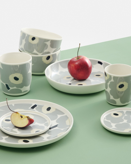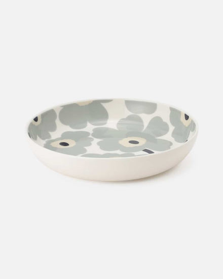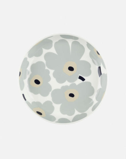 Marimekkoを代表するUnikko柄をプリントしたプレート。汎用性の高い少し深さのある使いやすいフォルムが特徴。大きく配した華やかなフラワープリントが魅力。モダンなムードの明るいグレーもスタイリッシュなデザインポイント。テーブルコーディネートがぱっと明るくなるアイテムです。