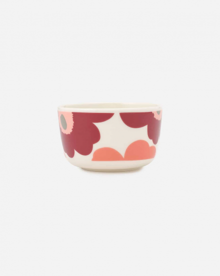 スープを注いだり、デザートを盛り付けたり、好みの使い方で取り入れることのできるボウルです。Marimekkoでも人気の高い「Unikko」柄は、ホリデーシーズンを意識したような、温もりあふれる色合いとなっています。食卓に置けばテーブルが明るくなり、おもてなしの場にもぴったりです。