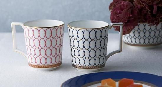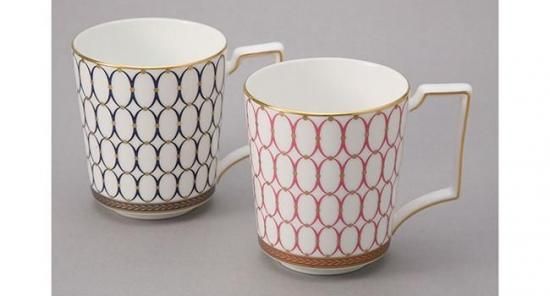 「ルネッサンスゴールド」は、ウェッジウッド創業時のネオ・クラシカルスタイルを現代風にアレンジしたパターンです。連続するオーバル(楕円)模様は、2世紀を超えて愛されてきたウェッジウッドならではの繊細な装飾のジャスパーカメオがモチーフとなっています。華やかなピンクとシックなブルーのペアは、ブライダルギフトや新生活を始める方へのギフトとしておすすめです。