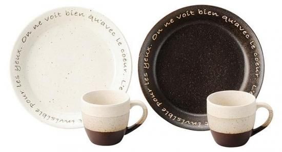ル・クールシリーズはシンプルでナチュラルなフレンチスタイルが人気です。お皿の縁の文字は「心でしか見えないんだよ、大切なものは目には見えないんだ」の意味で、星の王子様の有名な一文を取り上げています。