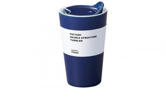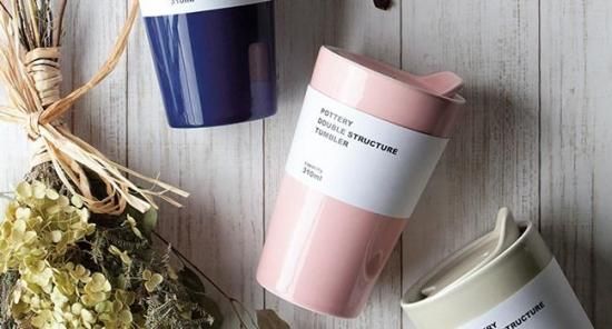 陶器ならではの口当たりのやわらかさで飲み物の風味が変わらず、熱い飲み物でも持ちやすく、中の飲み物が冷めにくい二重構造のタンブラーです。