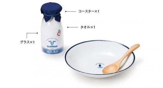 牛乳瓶をモチーフにしたシンプルなデザインのプレートと吸収性に優れた今治タオルとのセットです。