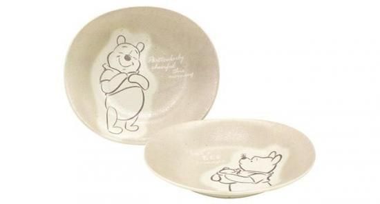 くまのプーさんを描くやさしい筆のタッチや愛らしいポーズ、ユーモラスな表情をナチュラルな釉薬の色合いが、リラックスしたやさしい気持ちにさせてくれそうな器たち。