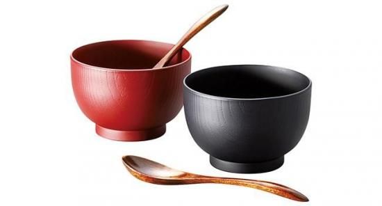 木目汁椀ペア スプーンセット 吟朱・黒