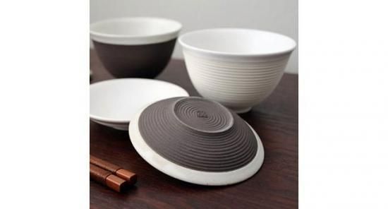 SENDANシリーズは、古くから伝わる千段技法を技法を曽根氏が現代風にアレンジして出来上がった商品です。千段とは、ろくろの上に生素地をおき、回転している素地に箆(へら)をあて素地の表面を1本の線で切れりことなく溝を掘る模様で、高度な技術が必要とされます。曽根氏は、その溝模様を従来の単色ではなく、白土と黒土の2色展開し、日本古来の技法をモノトーン調のシックでモダンなデザインを生み出しました。手に馴染んで持ちやすく軽い器です。