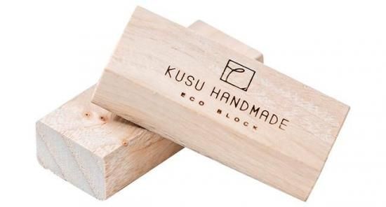 古くから“虫よけの木”として知られている「楠」。葉や枝から抽出した天然の「カンフル(樟脳)」は、強い防虫効果と消臭効果、そして香りには、リラックス効果もあるといわれています。エコブロックの材料は、楠の丸太を板材にする際に出る端材を利用しています。熟練した木工職人が、切り出しの楠の端材をひとつ一つ手間ひまかけて加工を行っています。エコブロックは、楠の持つ消臭・防虫効果を活かした衣類の防虫剤です。香りが薄れると効果も弱くなりますが、付属の楠から抽出した天然クスノキオイルをブロックに塗って繰り返し使うことができます。古来、独特の自然香で人々を守り、癒してくれる楠(くすのき)は、暮らしに優しい木です。『KUSUHANDMADE』は、そんな楠をもっと暮らしの中へ届けるために誕生しました。九州産の楠を使用し、手づくりにこだわり、天然カンフル(樟脳)は自社生産しています。体に優しいこと、心に優しいこと、家族に優しいこと、そして、自然に優しいこと。そんなことをまっすぐに考えながら、これからも「やさしい暮らし」をご提案します。